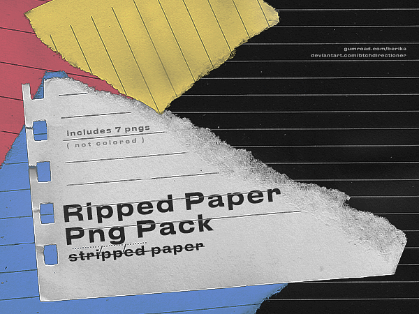 7 different ripped ( stripped ) paper scans in .png format